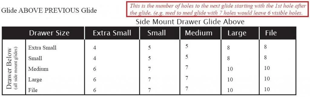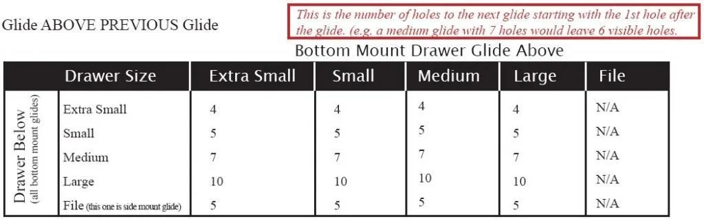 A number of factors determine where a slide is mounted. This is when it becomes vitally important to refer to your design plan and carefully figure out what style of drawer slide you should use, the size of the drawer (ie. extra small, small, medium, large or file drawer), what size of toe kick is being used, if any, and if a combination of different kinds of drawer slides are being used (ie. side mount slides for a file drawer and bottom mount slides for regular drawers located above the file drawer)